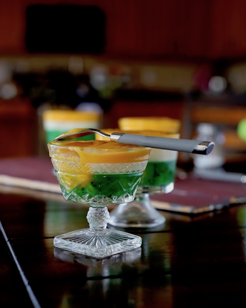 Kiwi, cream and mango pudding. The flavor profile can be read in its very name. Subsequently, there is an incredible assortment of texture to keep a mouth curious and enough tricolored beauty to make it levels more distinctive than the manufactured gloop you were going to buy the other day.